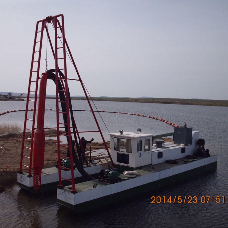 3、復(fù)合抽沙船:此船兼有絞吸式,射吸式兩船優(yōu)點(diǎn)。射吸式抽沙船適用于水庫(kù)庫(kù)尾的清淤。也有將噴射泵裝在絞吸式抽沙船的水下吸泥管中,作為一種輔助性的吸機(jī)具,增加挖深能力。