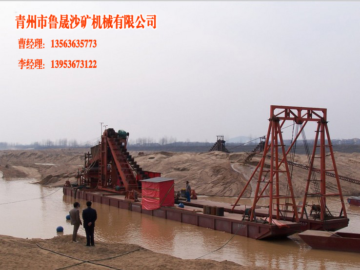 挖沙船,即采掘沙石、沙礦的船舶,一般為電動(dòng)遷移式或柴油機(jī)械動(dòng)力式。船體采用拼裝式箱型結(jié)構(gòu)。配有挖掘裝置、篩選裝置、提升裝置、傳送裝置等。通過電機(jī)驅(qū)動(dòng)挖斗上料,石塊通過篩選傳由輸送帶傳出,沙子由輸送帶或沙泵傳到地點(diǎn)。