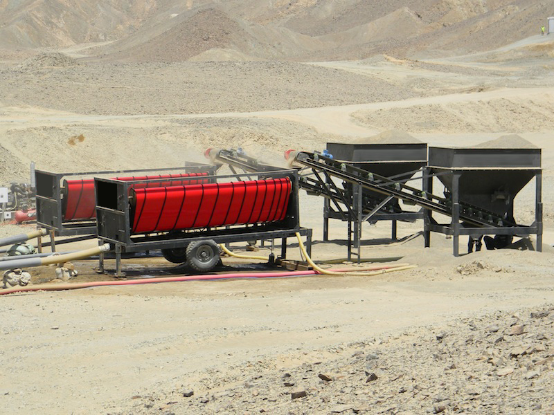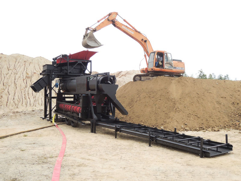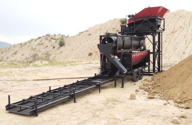 可采用挖掘機(jī)、鏟車、輸送機(jī)上料、也可定制為沙泵或翻斗車上料的料斗。料斗可配套格篩,將大石塊廢料隔出,以免對(duì)篩造成傷害。料斗可配套振動(dòng)給料機(jī)、使礦料在進(jìn)入滾筒式均勻、不間斷。小型淘金設(shè)備