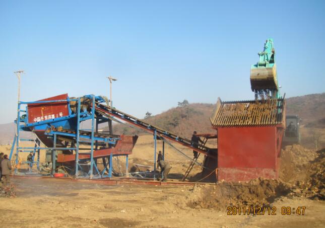 選礦機干枯河道河床選金設(shè)備產(chǎn)量在國內(nèi)外的很多沙金礦區(qū)中多是遠(yuǎn)古時期地殼運動所留下的干枯的河道,河床,往往沙金的含量是比較高的,這都是有根據(jù)的.在干枯河道中選金,往往含廢料比較多,像是費石子,有的還有樹根的其他雜物含量也是比較多.這樣在選礦的時候設(shè)備一定要選擇好.可以采用挖掘機或鏟車上料,如果還有水的話也可以采用抽沙泵上料進(jìn)入沙金提取設(shè)備. 挖掘機或鏟車上料至選金設(shè)備料斗,振動料斗振動均勻下料至滾筒洗礦分離篩,進(jìn)行篩分,將礦中所含有的石子,或樹根等其他廢料篩分出去,含金的礦料經(jīng)過滾筒洗礦分離篩的篩分沖洗進(jìn)入選金槽或者離心機或魯晟機械所研制的新型跳汰機進(jìn)行選金,金子和重沙留在里面,沙子就排走了.魯晟機械制造的河道河床選金設(shè)備出口了多個地區(qū),有移動式的有振動式的多種,受到礦老板們的一致好評.