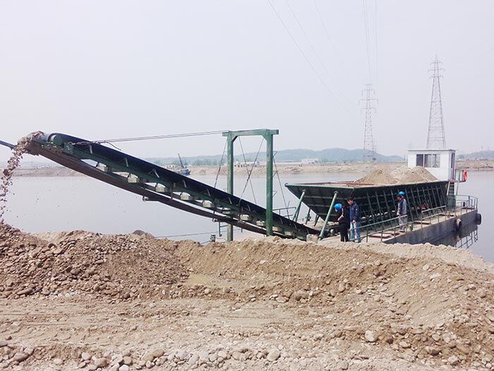 主要工作過程為:挖沙設(shè)備采集原料,輸送到運(yùn)輸船儲料倉,然后經(jīng)過運(yùn)輸船到岸邊,用輸送帶輸送到陸地上。